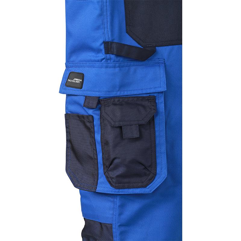Pantalon workwear mixte JN832 de la marque James & Nicholson personnalisable.Le pantalon de travail unisexe est adapté à toutes les saisons. La longueur de jambes standard. Toutefois, il existe également dans une version longue et courte. Il possède 2 poches latérales, 1 poche sur les cuisses et 2 poches arrières. Il y a des poches en Cordura® pour genouillères. La taille du pantalon est élastiquée avec passant pour ceinture. De plus, il y a une fermeture éclaire ainsi que des renforts triples surpiqûres. Il y a un passepoil réfléchissant sur poche.Le pantalon de travail est composé de 65 % de polyester et de 35 % de coton. Le pantalon pèse 260 gr/m². Ce produit est disponible en plusieurs tailles, du 38 au 52. Enfin, il est proposé en 8 couleurs.Ce produit est adapté à toutes les saisons. Le pantalon de travail en Cordura apporte également du confort au quotidien. Pour finir, sa matière souple et robuste permet de travailler en étant à l'aide et en sécurité.Pourquoi personnaliser son pantalon de travail ?