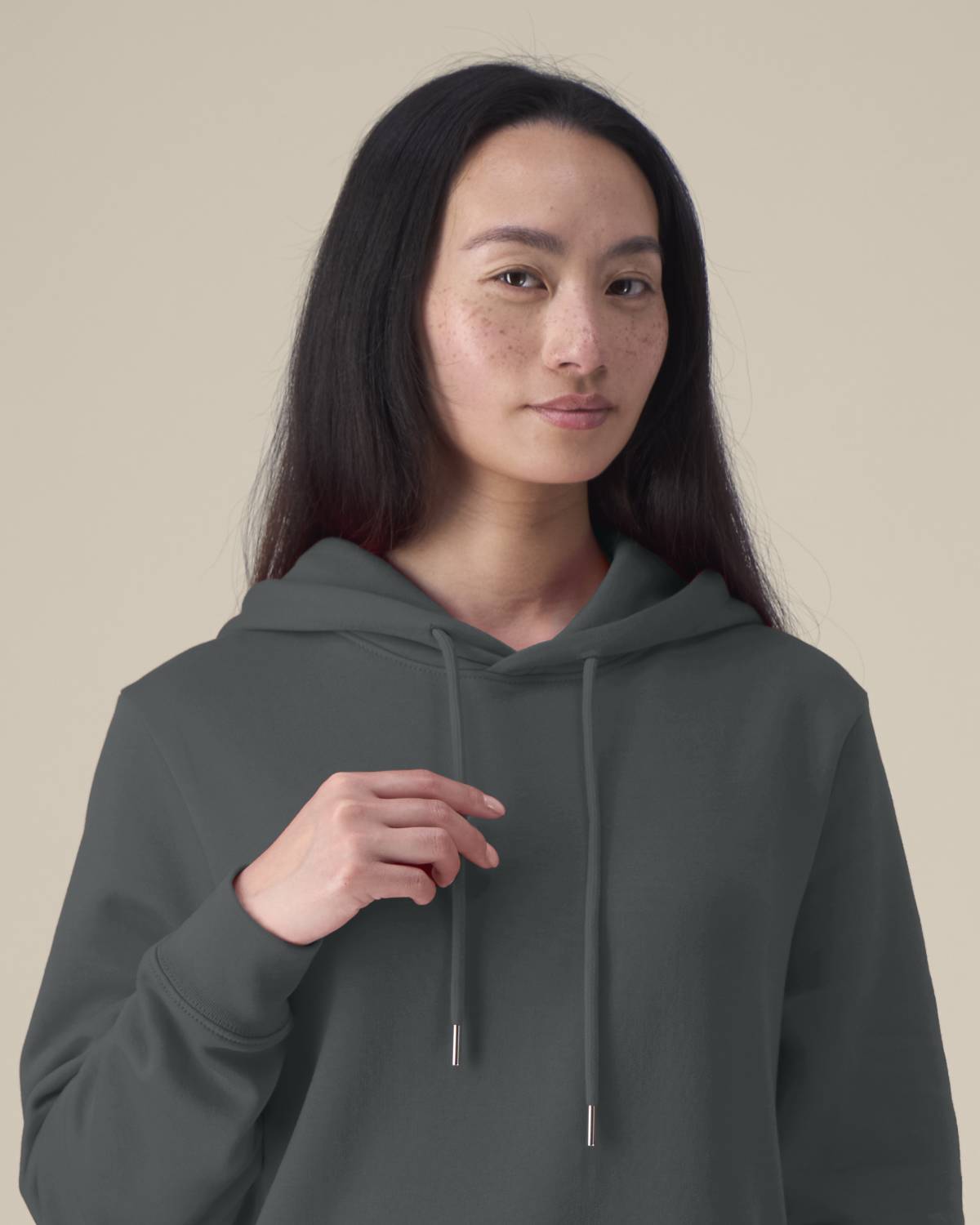 Le sweat à capuche femme Stella Gamechanger en coton recyclé personnalisable en Bretagne dès 5 pièces. Ce produit est personnalisable en broderie. De la marque écoresponsable Stanley Stella.